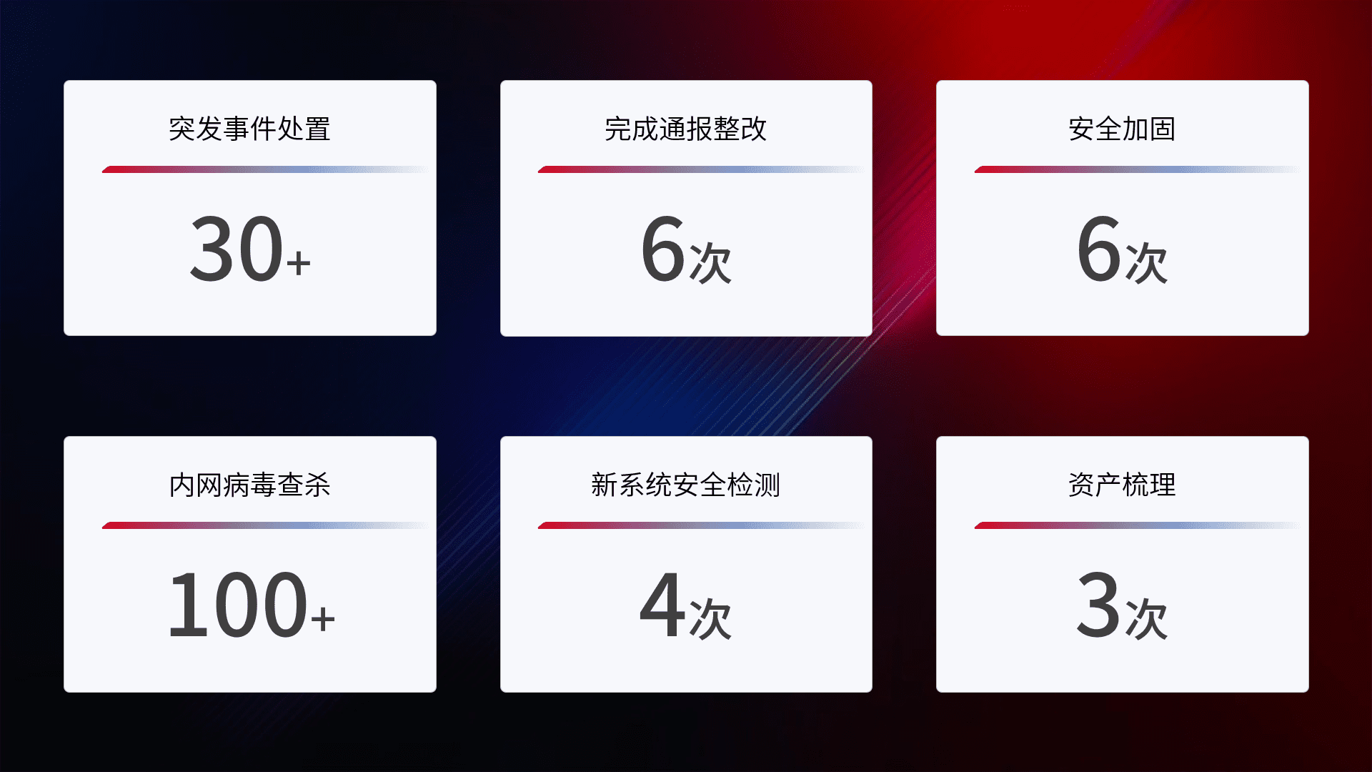 网络安全加固与风险管理:通过技术加固手段,,如加强区域隔离,,,,缩减攻击内网横向移动的范围;优化现有网络安全管理制度,,降低网络威胁暴露面,,,,减少被黑客攻击的可能性。。